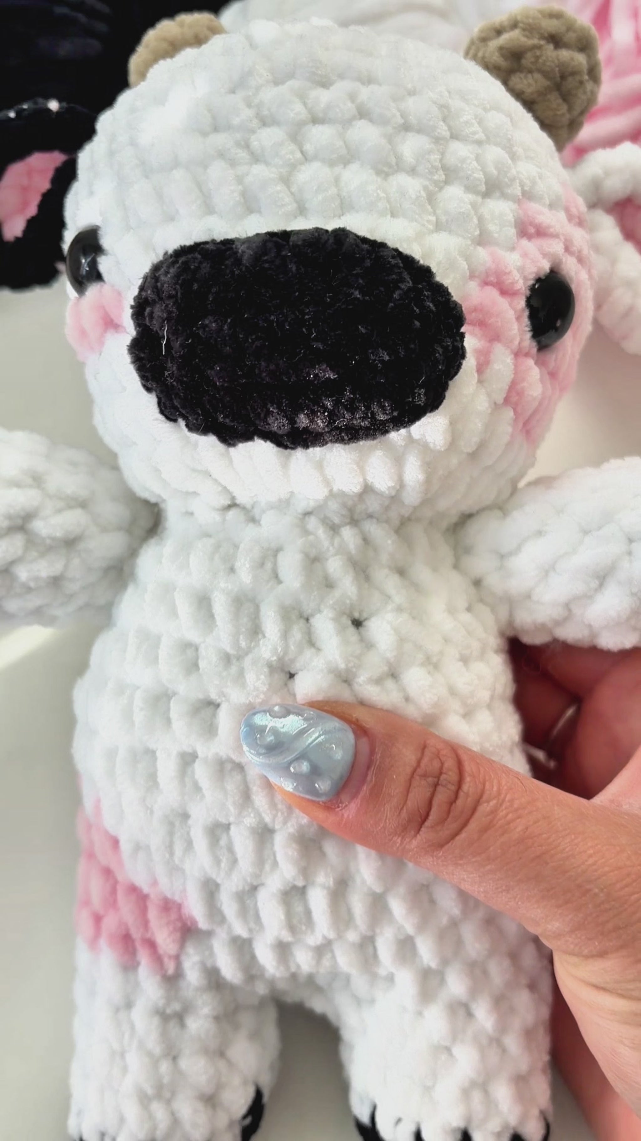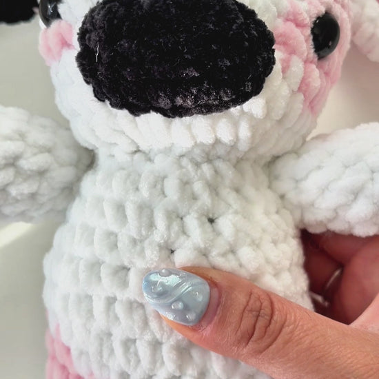 The cow plush is an adorable and incredibly soft crochet plush made by hand.